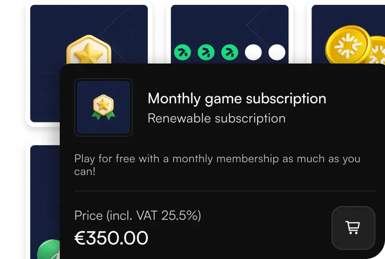 Sell playing rights, memberships, club products, and punch cards. You can also cross-sell playing rights effortlessly.