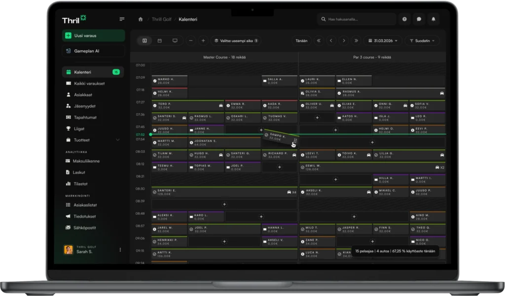 Thril on moderni alusta liikuntapaikkojen hallintaan ja kehittämiseen. Se tarjoaa monipuoliset työkalut varausten hallintaan, asiakastietoihin, maksuihin, markkinointiin ja raportointiin. Thril on suunniteltu toimimaan kaikenlaisten liikunta-alan yritysten tarpeisiin – oli kyse sitten padel- tai tenniskeskuksesta, jalkapallohallista, kiipeilykeskuksesta tai kuntosalista.